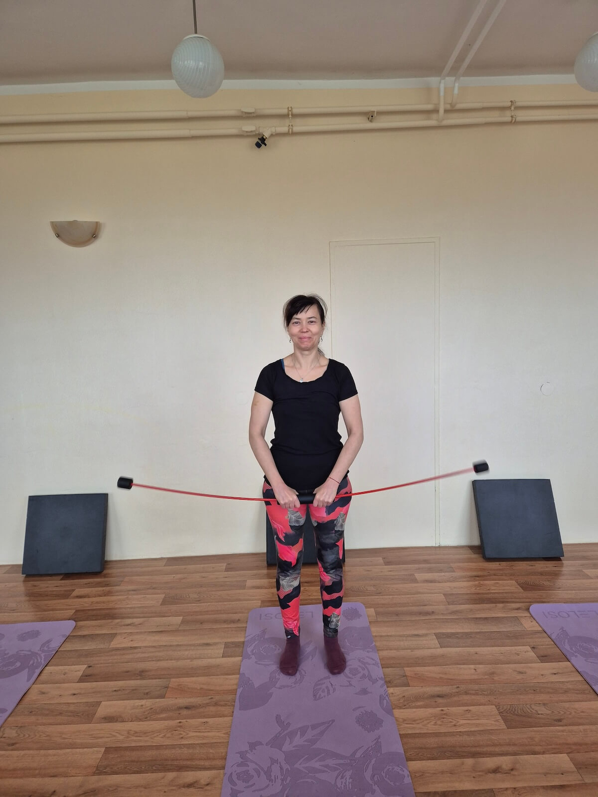 Cviky jsou jednoduché, cvičí se pouze s vlastní váhou, u některých cviků se používají speciální bloky a pásek.